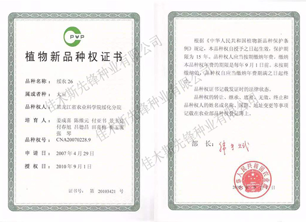 走進我們 COME INTO US 您現(xiàn)在的位置:網(wǎng)站首頁 > 走進我們 >資質(zhì)榮譽 公司簡介 企業(yè)文化 領(lǐng)導(dǎo)致辭 資質(zhì)榮譽 農(nóng)作物種子生產(chǎn)經(jīng)營許可證(副證) 農(nóng)作物種子生產(chǎn)經(jīng)營許可證(副證) 農(nóng)作物種子生產(chǎn)經(jīng)營許可證(副證) 黑農(nóng)48省農(nóng)作物品種合格證書 黑農(nóng)48植物新品種權(quán)證書 綏農(nóng)26植物新品種權(quán)證書 共32條記錄 當前為第2頁/共6頁上一頁1234...6下一頁